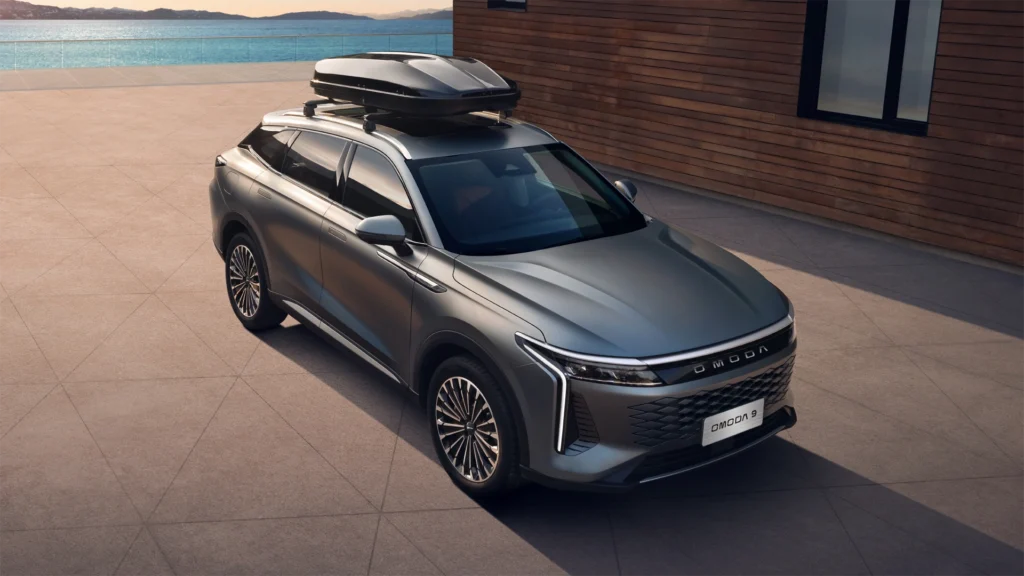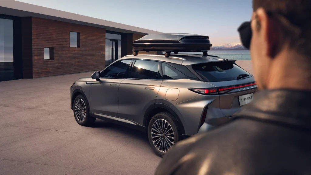 Der Omoda 9 *2 vereint Eleganz, Raumkomfort und Premium-Charakter in einem modernen SUV. Als größtes Modell der Omoda-Familie überzeugt er durch kraftvolle Präsenz und hochwertige Ausstattung. Dank seiner großzügigen Innenraumgestaltung eignet er sich ideal für Familien, Vielfahrer oder alle, die mehr Raum für Komfort und Technik wünschen. Moderne Fahrassistenten, intelligente Lichtsysteme und ein edles Interieur schaffen ein besonders entspanntes Fahrerlebnis – auf kurzen wie langen Strecken. Mit zukunftsweisender Antriebstechnologie und stilvollem Design steht der Omoda 9 für anspruchsvolle Mobilität mit maximalem Wohlfühlfaktor.